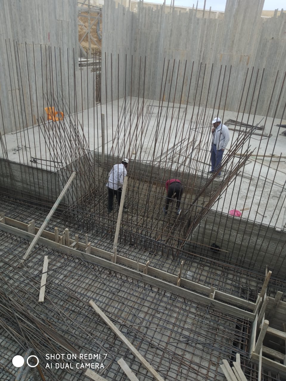 .استلام جميع الخامات ومطابقتها للأصول الفنية وفقا لأفضل المعاييرو و الاستلام الفني الهندسي لأعمال النجارة والحداد والصبة والاشراف على عمل اختبارات تكسير المكعبات الخرسانة