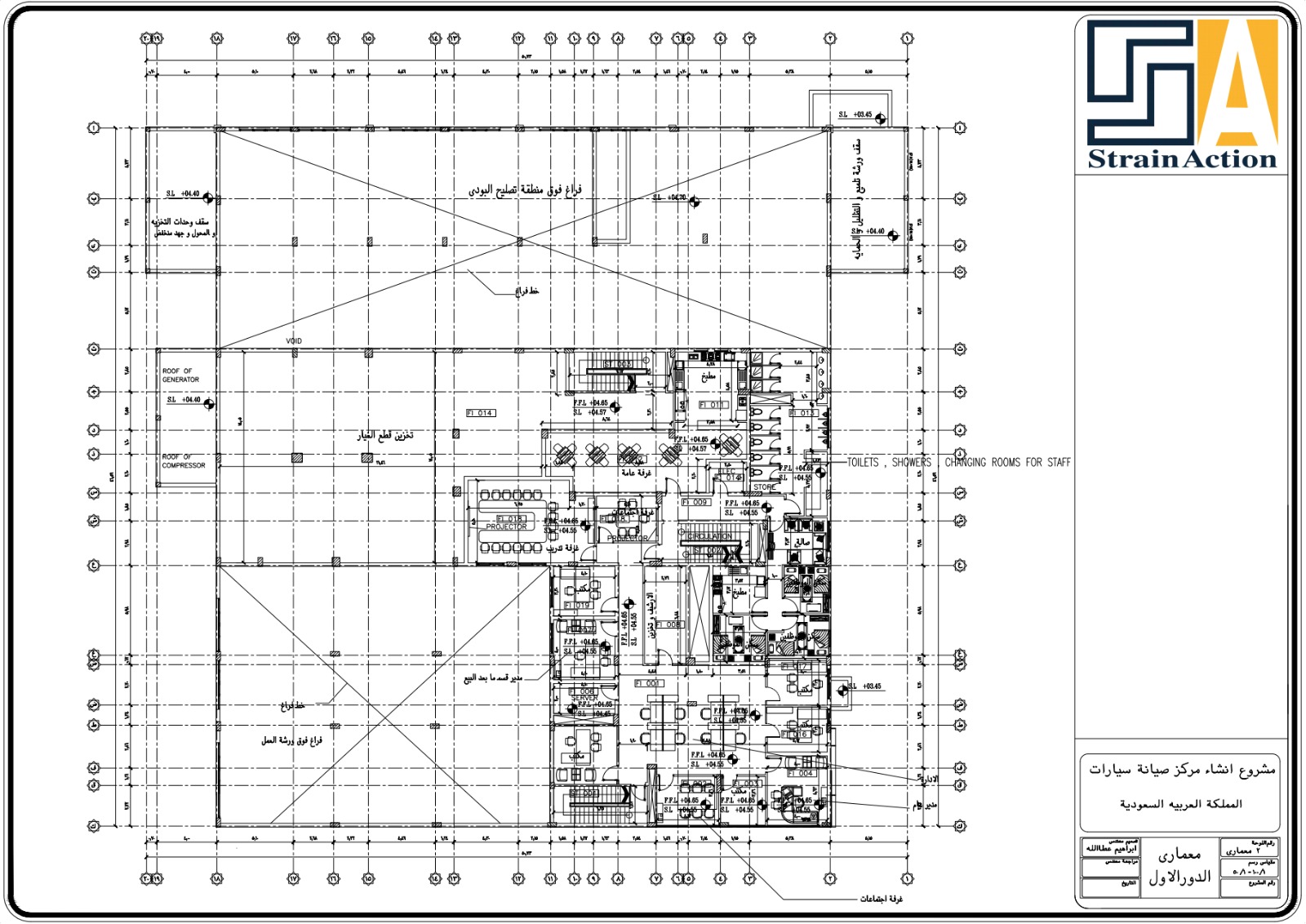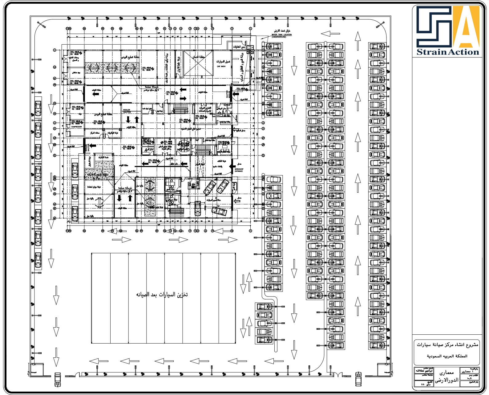 عمل تصميم معماري و انشائي متكامل لمصنع لصيانة السيارات بالمملكه العربية السعودية علي مساحة 10000 متر مربع