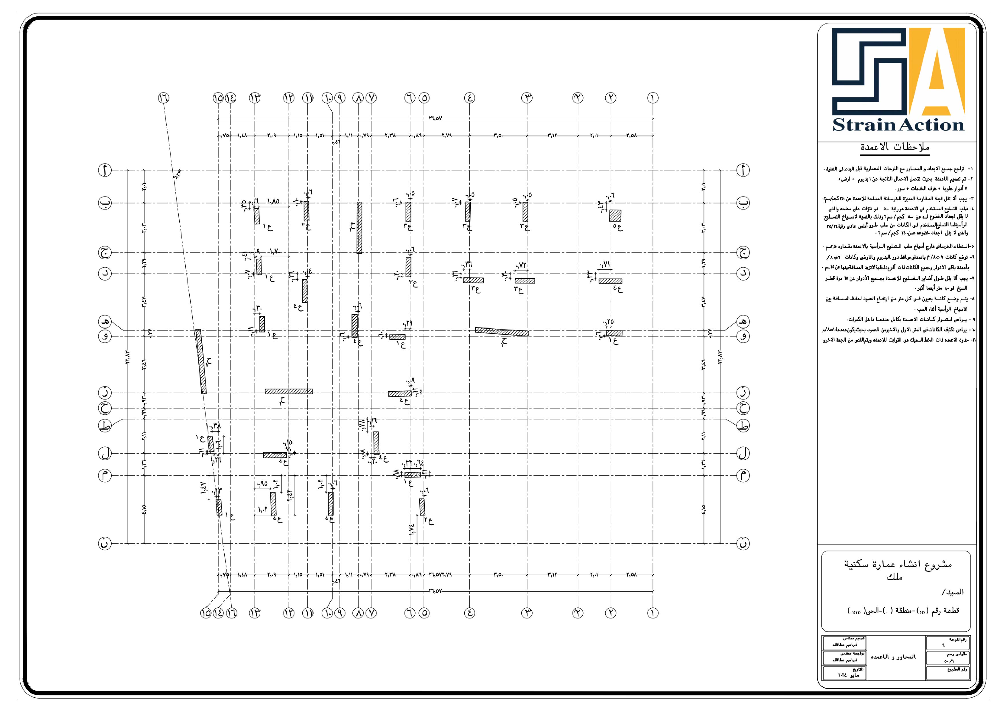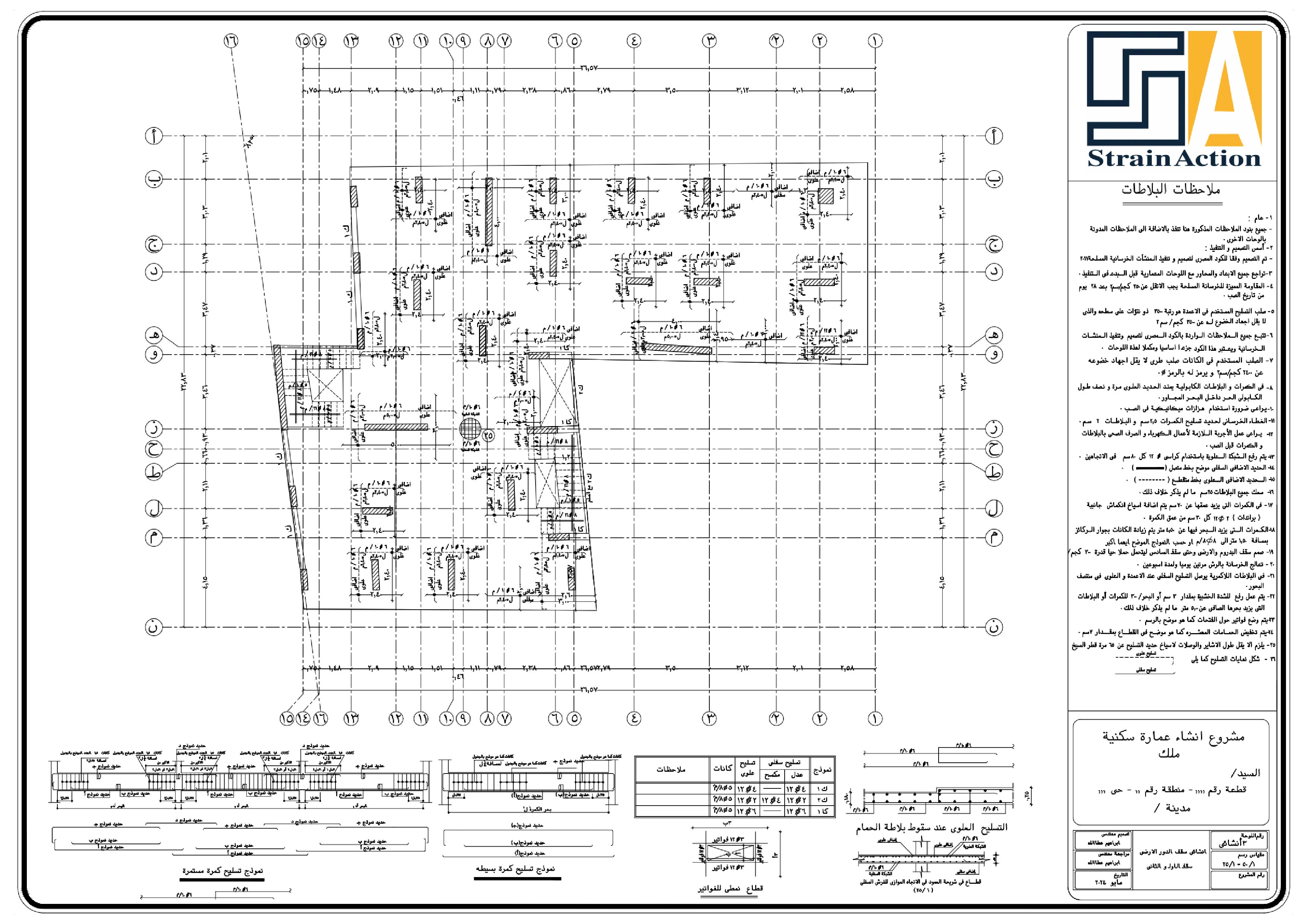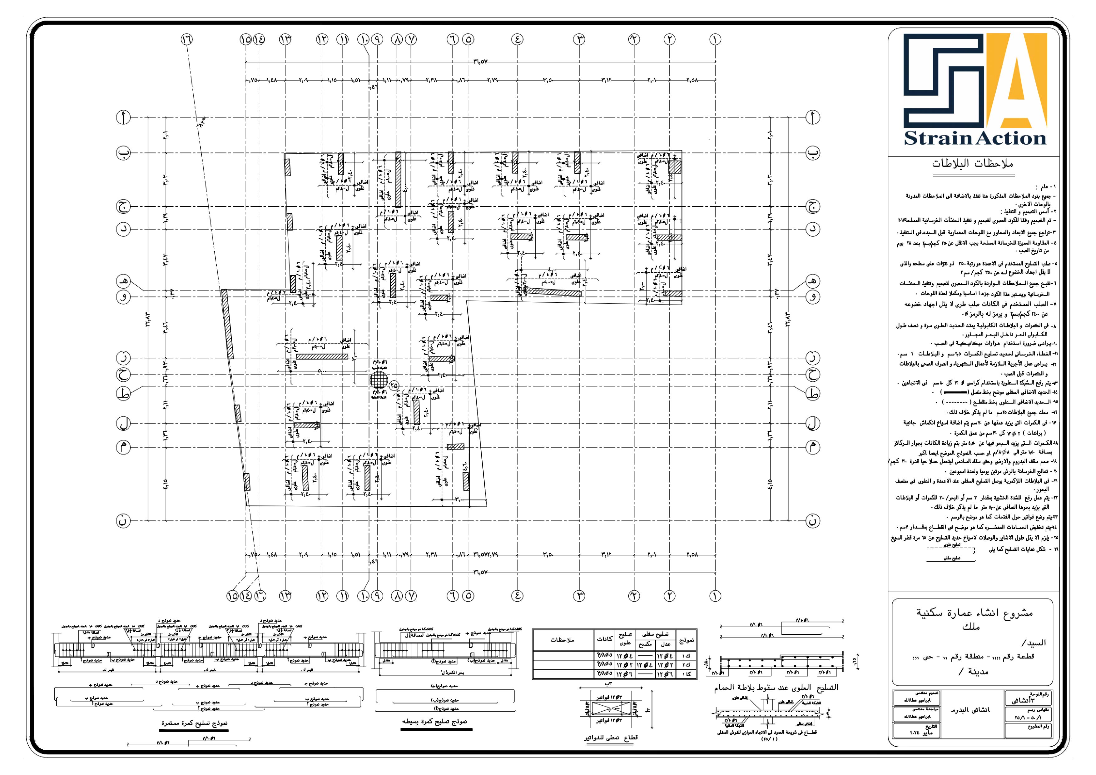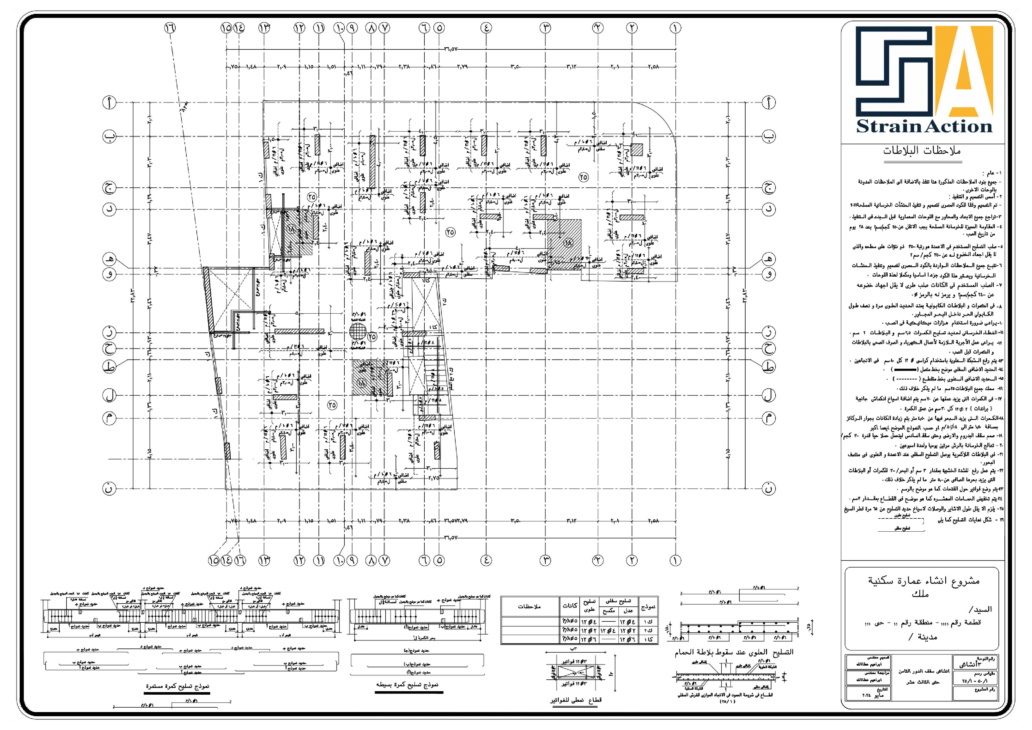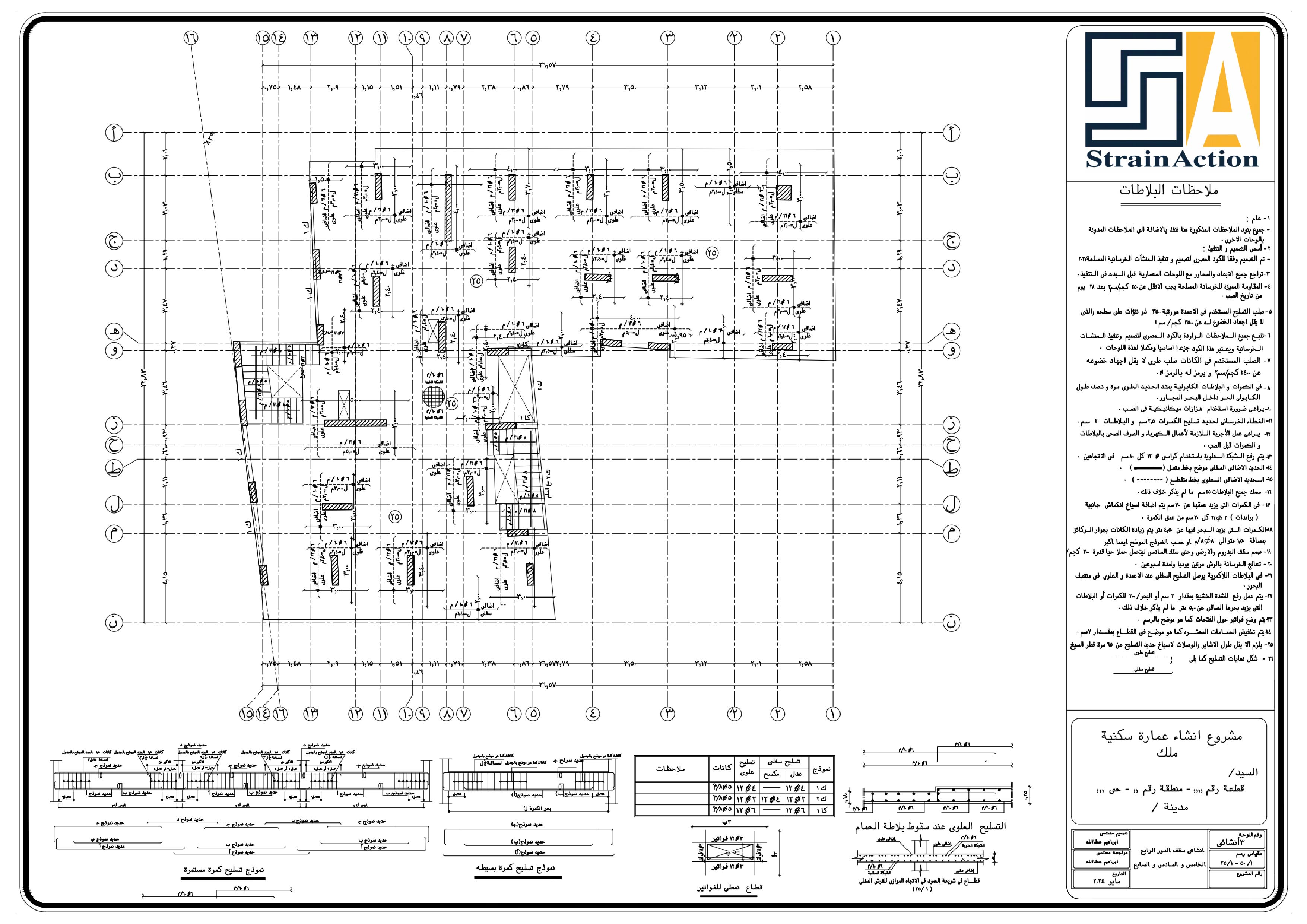 تم عمل التصميم الإنشائي الأمن و الإقتصادي وفقاً لمعاير و قوانين الكود المصري للتصميم و تنفيذ المنشأت الخرسانية